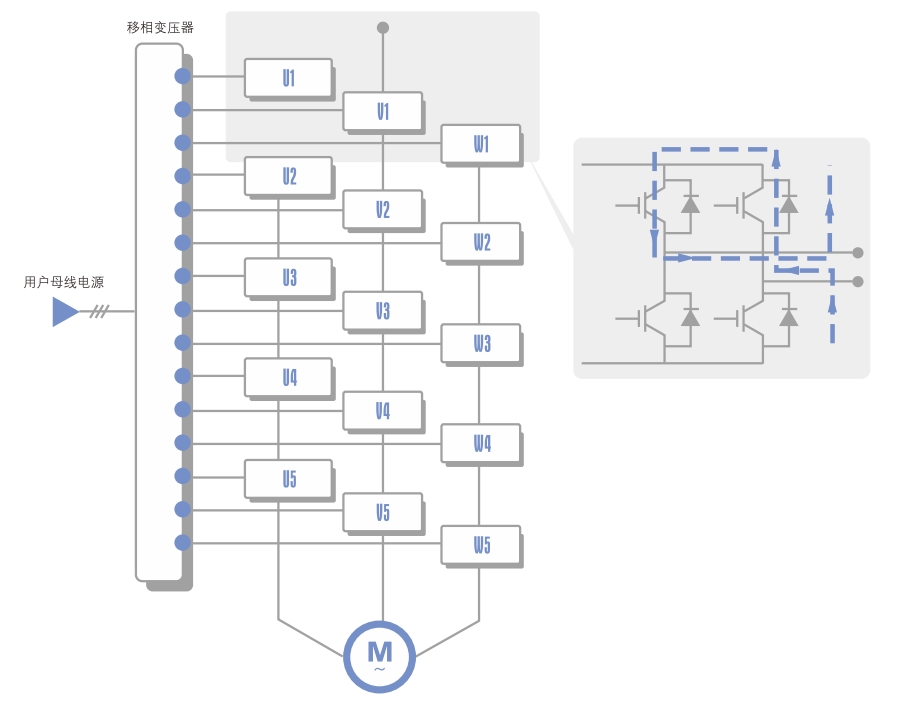 功率單元回路更加簡單,減少器件故障點提高可靠性。