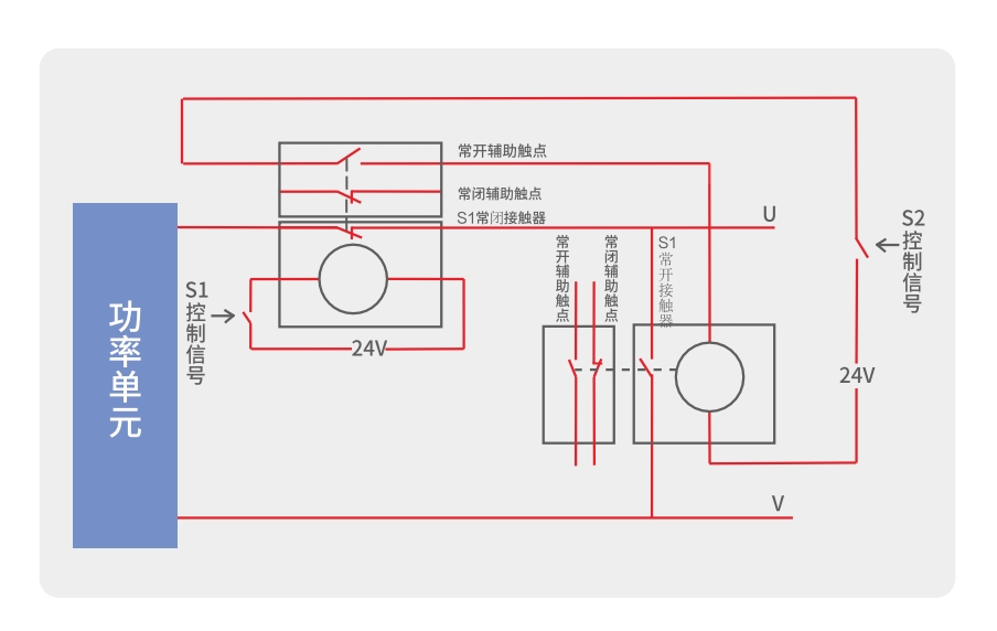 當(dāng)單元IGBT故障時,接觸器觸點S1斷開S2閉合(S1和S2經(jīng)輔助觸點互聯(lián)),可實現(xiàn)對單個單元的精準(zhǔn)旁通。