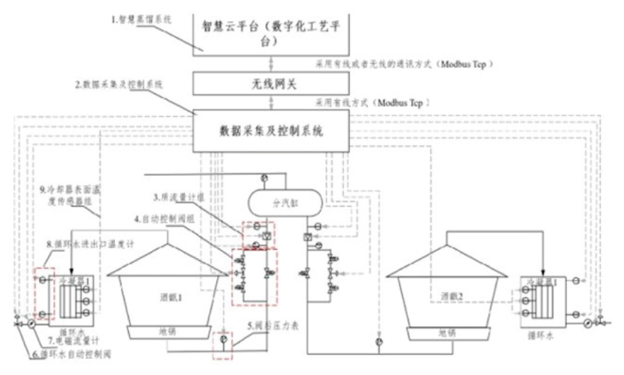 基于自身軟硬件平合,東方自控將生產(chǎn)過(guò)程關(guān)鍵熱工數(shù)據(jù)進(jìn)行采集、自動(dòng)控制,利用熱能、自動(dòng)控制及大數(shù)據(jù)分析等優(yōu)勢(shì)技術(shù),深入挖掘蒸餾工藝及底層機(jī)理,厘清關(guān)鍵熱工參數(shù)對(duì)基酒產(chǎn)量品質(zhì)的影響規(guī)律,實(shí)現(xiàn)蒸餾工藝及關(guān)鍵熱工參數(shù)優(yōu)化,每可提高1~8%基酒產(chǎn)量、降低蒸汽總用量3~10%。