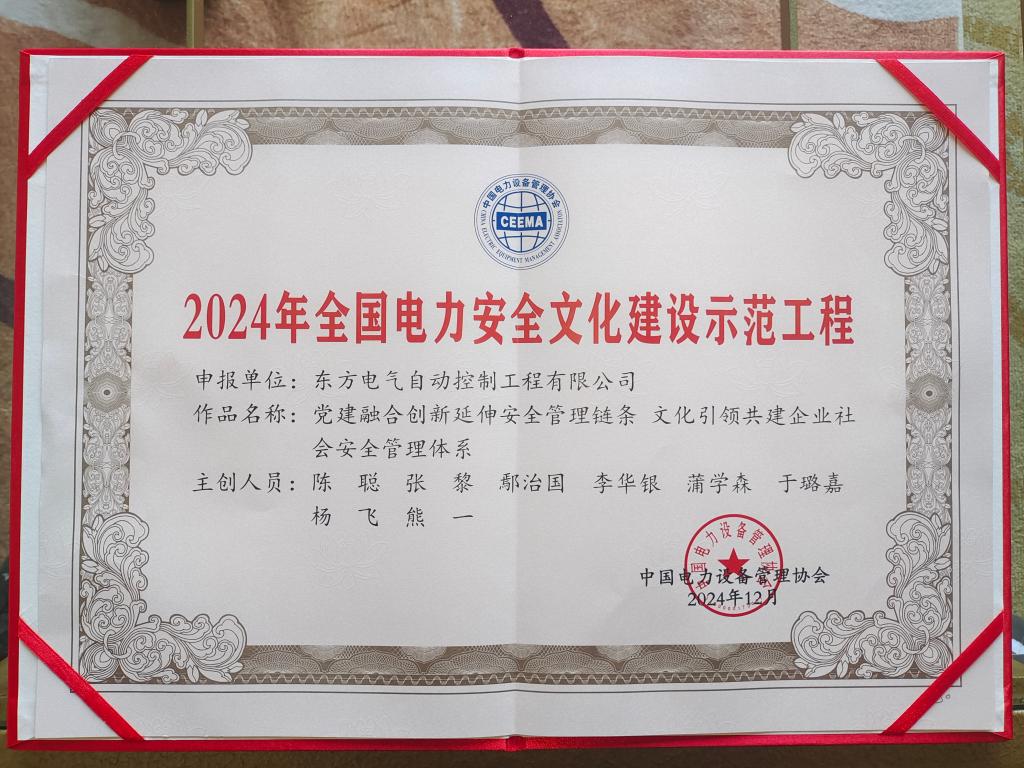 近日,中國電力設(shè)備管理協(xié)會(huì)組織召開“2024年度全國電力行業(yè)安全文化精品工程、示范工程建設(shè)”成果發(fā)布會(huì),經(jīng)專家組初審、復(fù)審、現(xiàn)場調(diào)研等多輪評(píng)審,公司《黨建融合創(chuàng)新延伸安全管理鏈條,文化引領(lǐng)共建企業(yè)社會(huì)安全管理體系》安全文化建設(shè)成果從全國1041個(gè)申報(bào)項(xiàng)目中脫穎而出,榮獲“2024年度全國電力安全文化示范工程”獎(jiǎng)。安全是公司發(fā)展的永恒主題,安全文化是企業(yè)文化的重要組成部分,是公司可持續(xù)發(fā)展的重要基礎(chǔ)。公司緊...